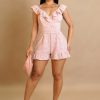 Pretty pink romper with a playful touch. Perfect for weekend strolls and brunch dates.